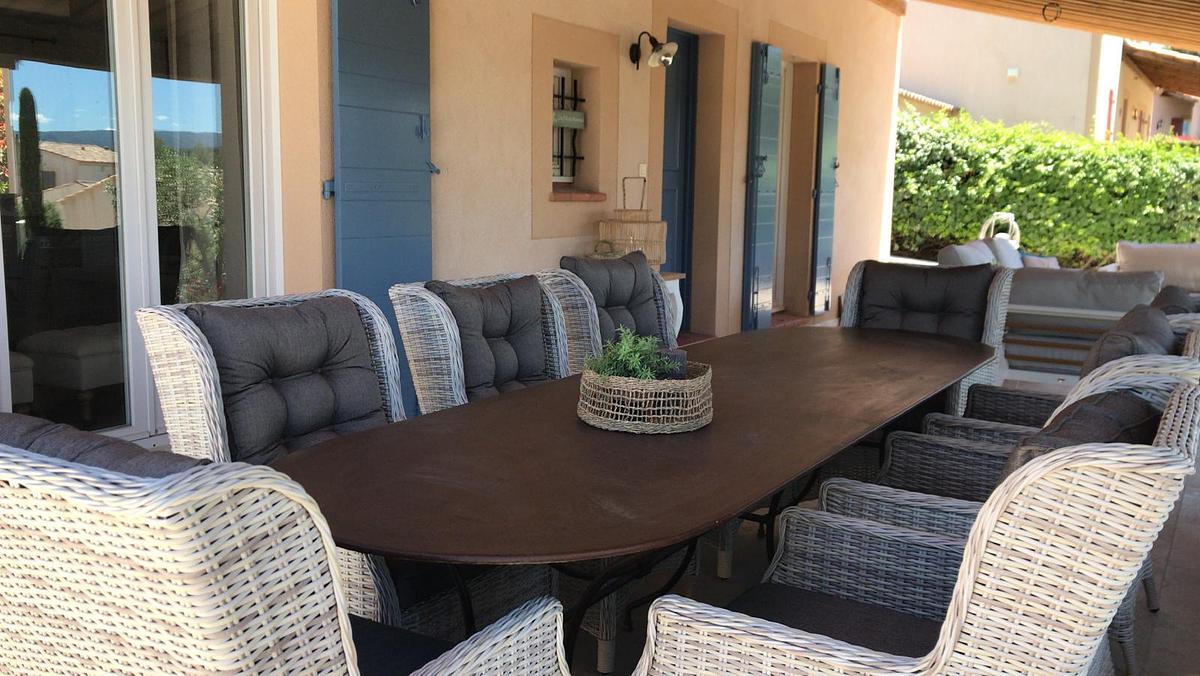 Het huis zelf heeft naast het grote (verwarmde) privé zwembad waar u een verkoelende duik in kunt nemen ook een grote overdekte veranda met daarop een royale tuintafel en terrasstoelen, zodat u tijdens warme dagen desgewenst ook uit de zon kunt zitten.