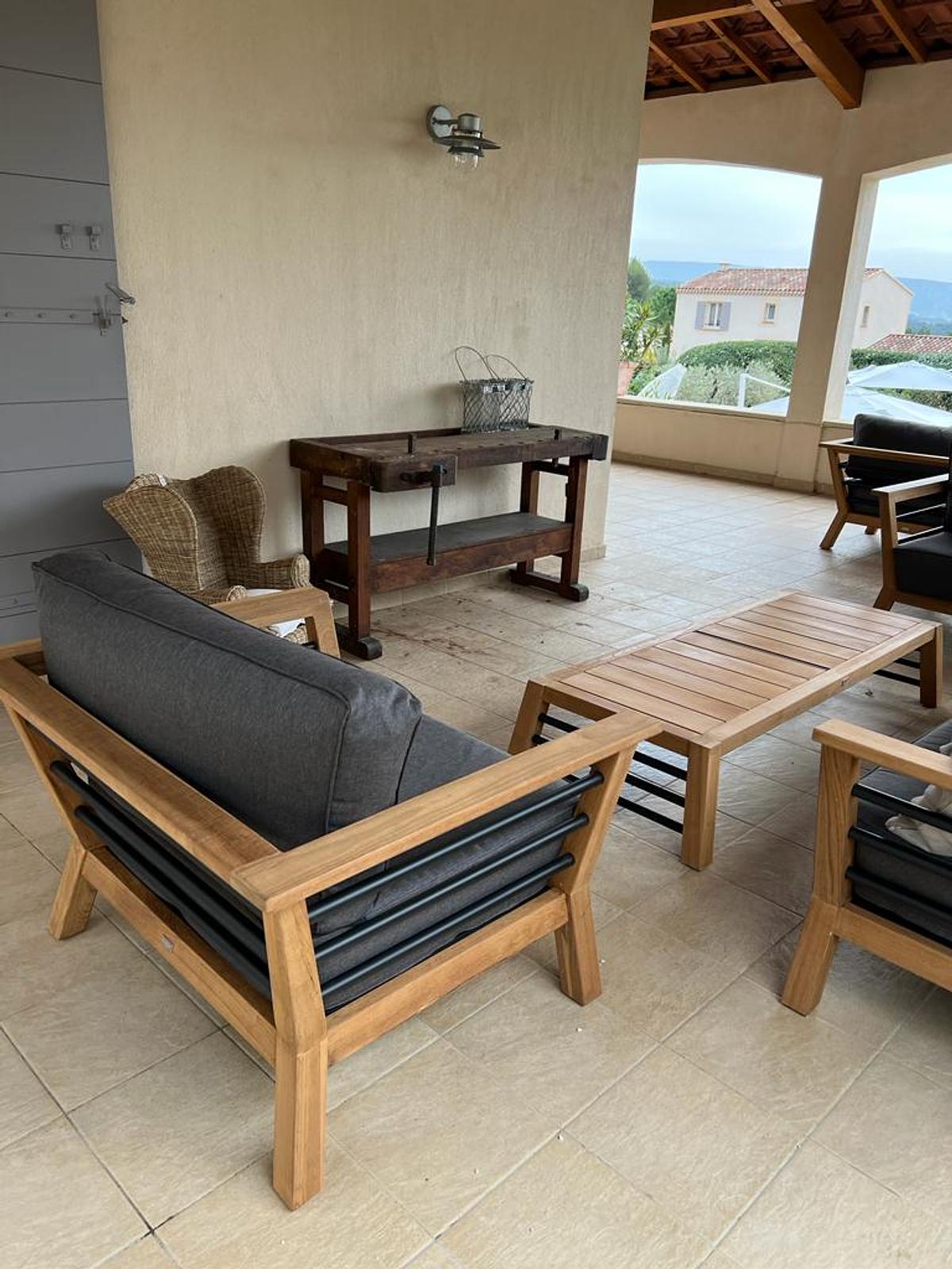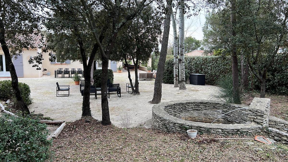 Het vakantiehuis heeft een zeer ruime en mooi aangelegde tuin met een mooi -extra groot- overdekt terras en een groot terras rondom het zwembad: beiden ingericht met luxe tuinmeubelen en loungesets en een elektrische Weber barbecue. Vanuit huis, terras en tuin heeft u een prachtig vrij uitzicht op de Petit Luberon.